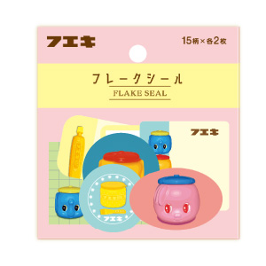 フエキの「のり」がデザインされたフレークシールです♪どうぶつのり、チューブのり、つぼのりなどのデザインが15種類×2枚入ったフレークシール!実写風デザイン・かわいいイラストデザインの2種類です。